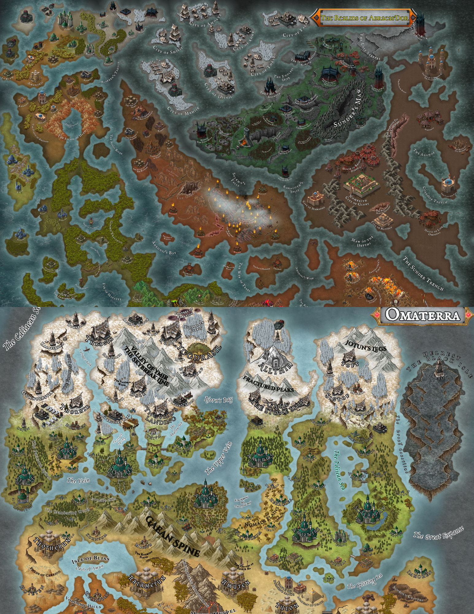 Abraeas’Dor - A homebrew world that is entirely my own making, which I have been developing for over a decade. This campaign setting is a lot darker than Omaterra, with much more space for serious roleplay and dramatic decisions. This world contains more dark subjects inside of it, and is a multilayered plane of existence. If you’re looking for a more serious or political campaign, this is the setting for you.