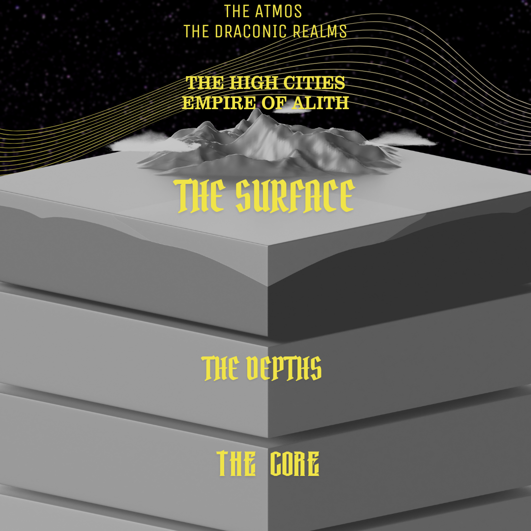 This is the prime mortal plane of the universe of Heiri’Khall. This is the mortal plane of Abraeas’Dor. This plane if large in every way, with longform campaigns and vertical levels, including the Atmos(The Highest), Alith the High Cities(2nd Highest), the Surface(The Middle), the depths(2nd lowest, Underground), the Core(3rd lowest, Underground).
